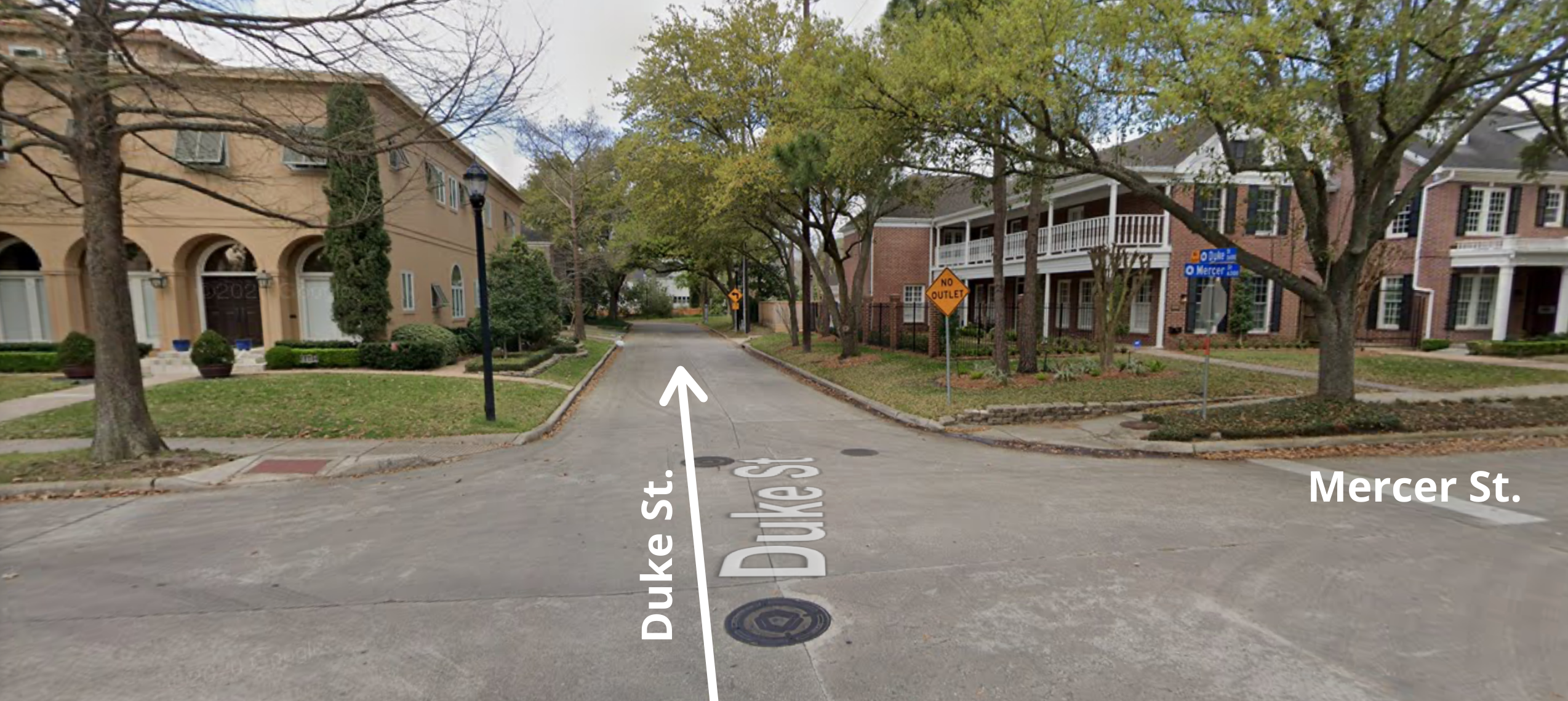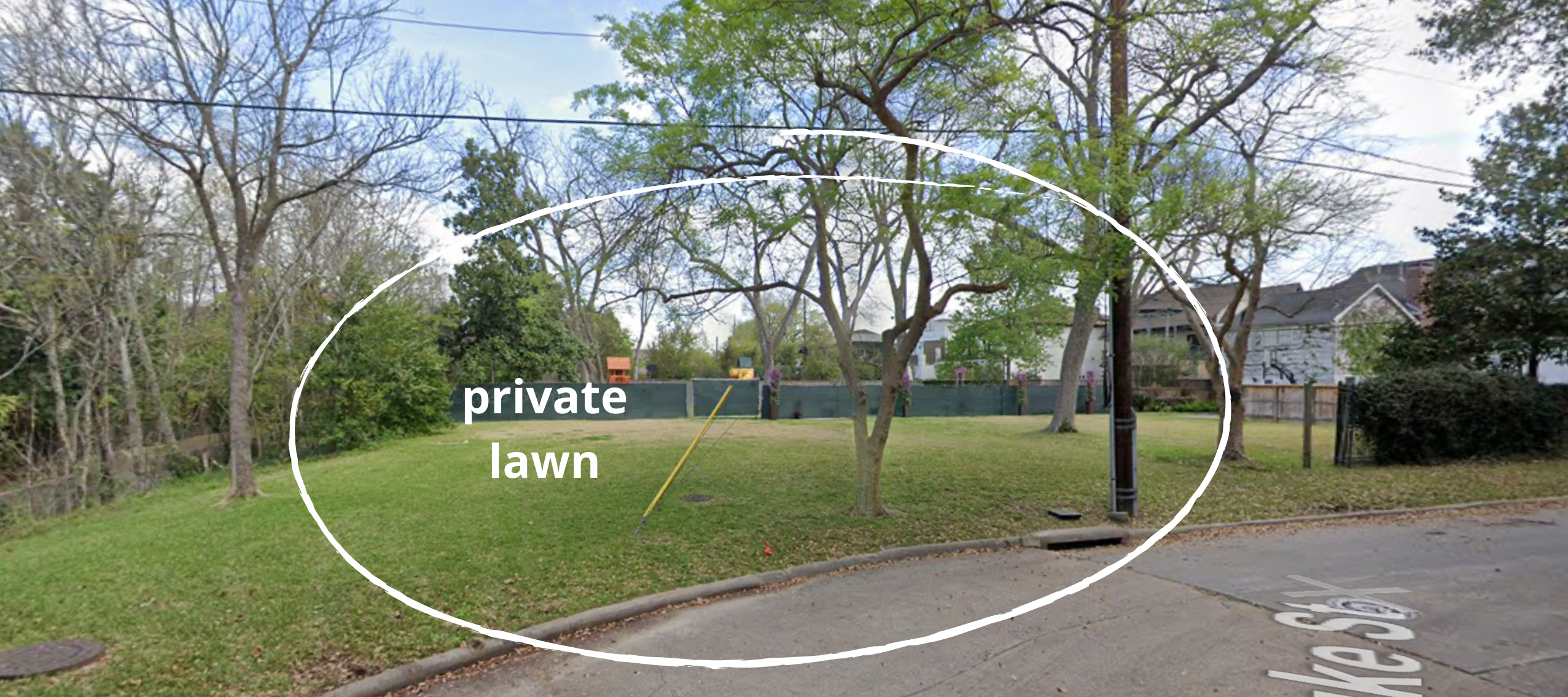 The Private lawn is located at the curve where Duke St. and Virginia St. meet.